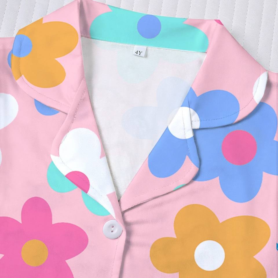 Nuovo pigiama da ragazza della scuola media Set di pantaloncini a maniche corte stampa pigiama per bambini