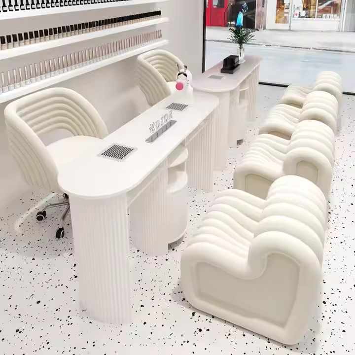 Nuovo tavolo minimalista a strisce gambe da tavolo da rock board aspirapolvere incorporato tavolo manicure e sedia combinazione