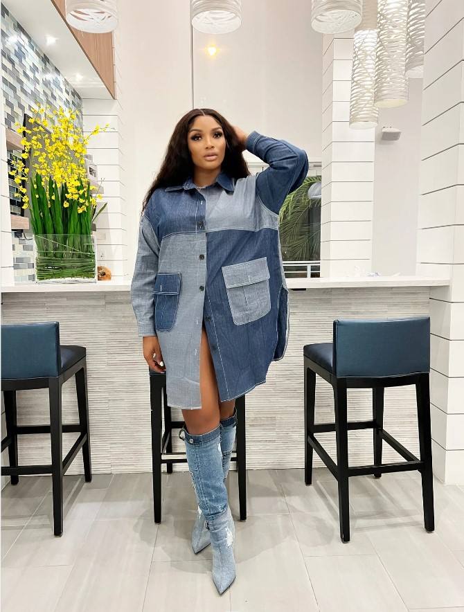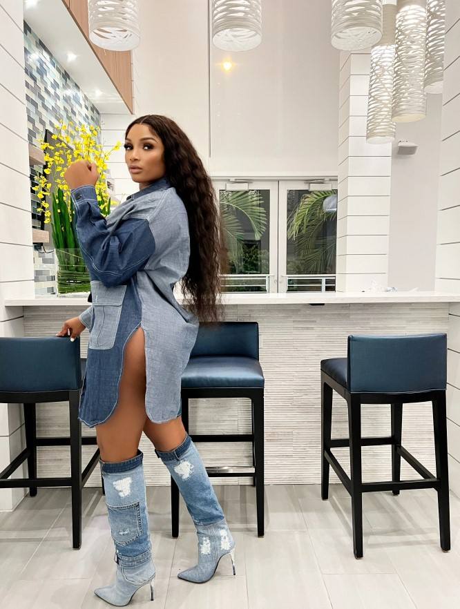 Nuovo Modello Dropshipping Abito in Jeans con Tasche Applicate Lavaggio Vintage Sexy a Maniche Lunghe Oversize per Donna