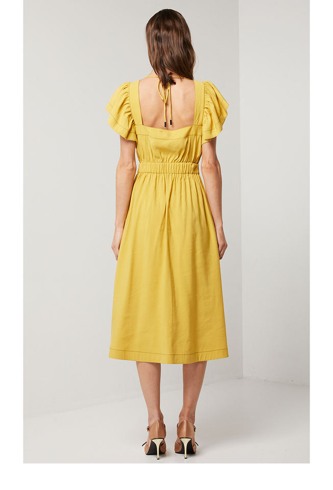 Nuovo Modello di Abito Lungo Giallo Casual con Spalline