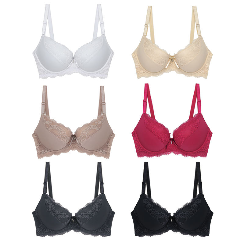 New Model Non Padded Bra Sexy Adult Bra in Nylon for Women Ladies Lace Bra Seamless Push Plain Dyed Underwire Back Closure 3 Pcs