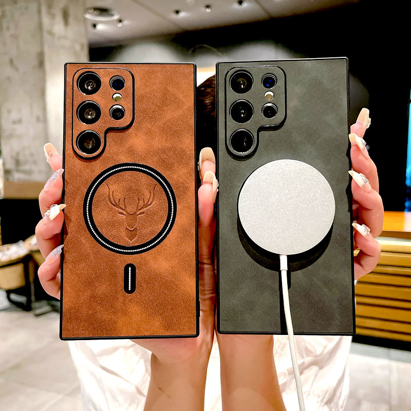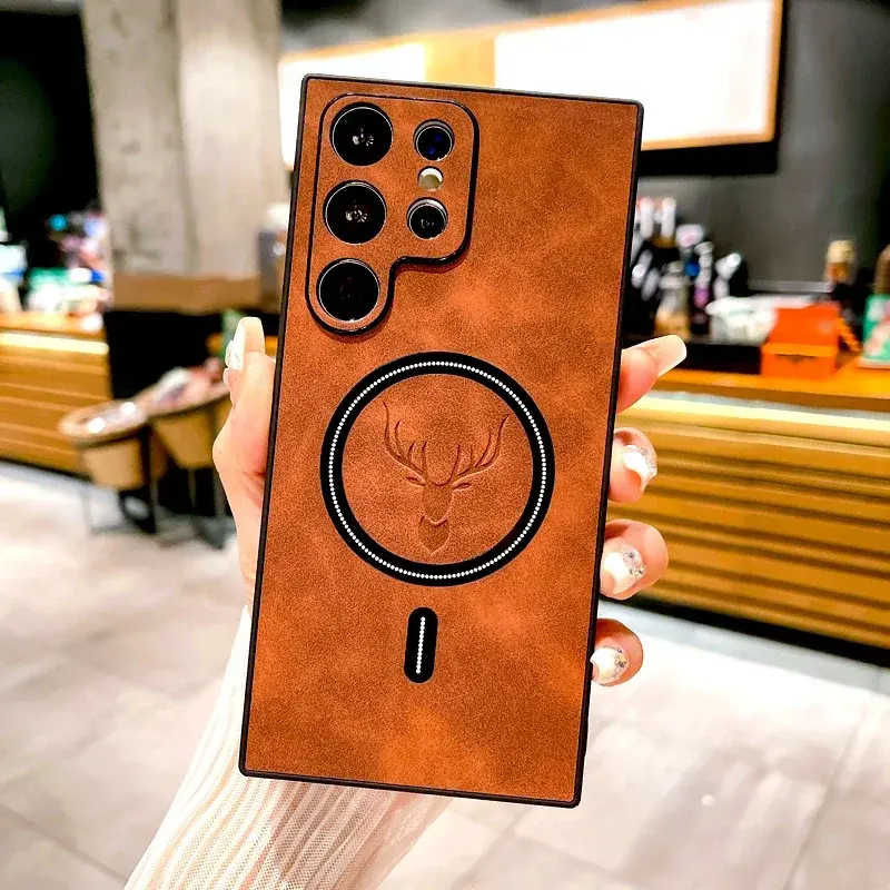 Custodia in pelle con bordo S25 modello per Samsung Galaxy S25 Ultra Cover S24 FE S23 S22 S21 Note 20 Ultra 4 23 copertura di carica magnetica