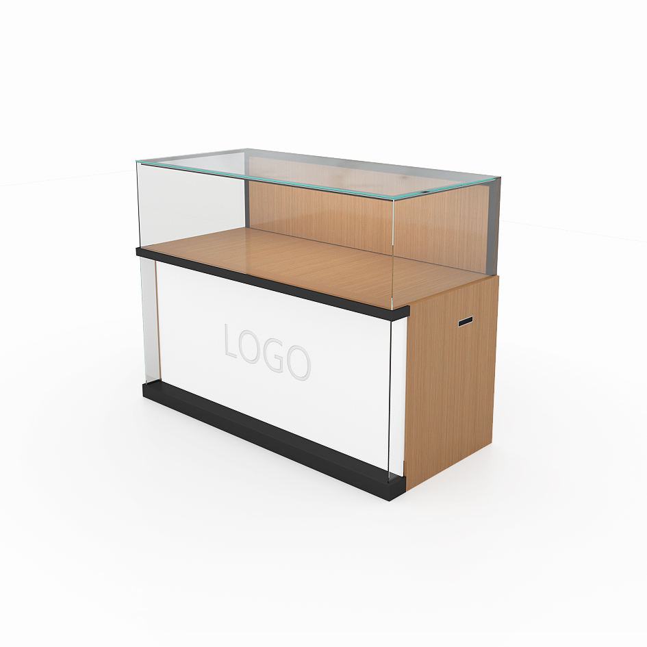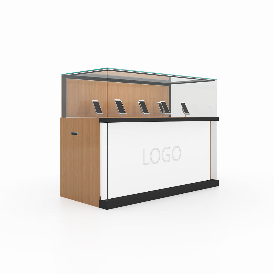 New Modern Brand logo Led Light Design Wood Glass Cell Cabinet Mobile Phone Counter Display showcase for Store