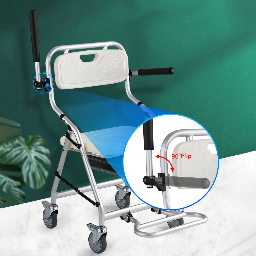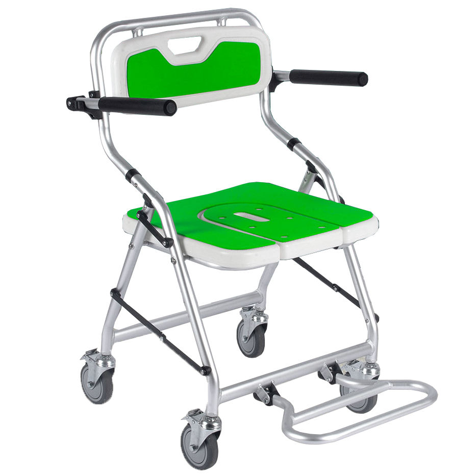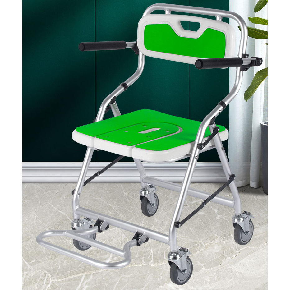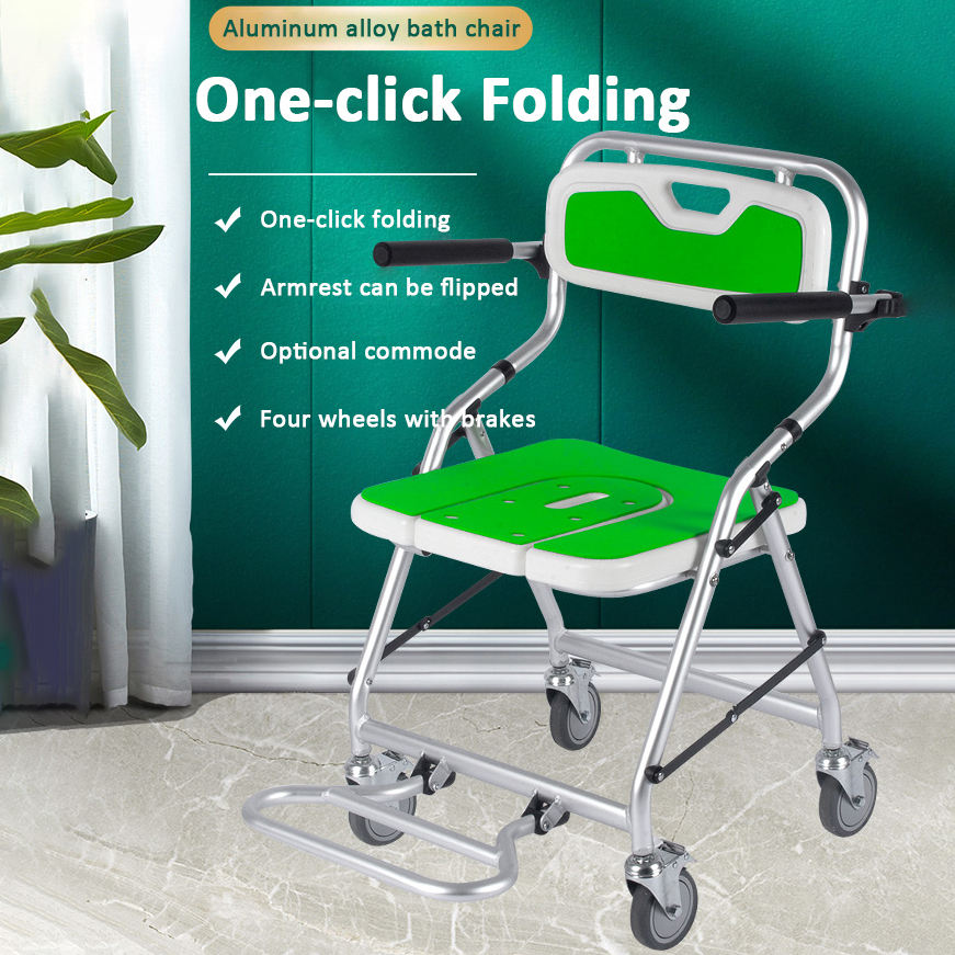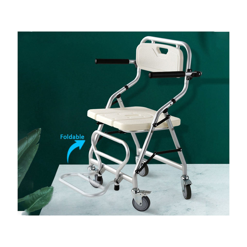 Nuova Sedia da Doccia e Comoda Pieghevole con Ruote Bloccabili per Anziani, Moderna e Confortevole