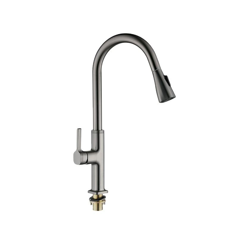 Nuovo stile moderno spazzolato rubinetto da cucina con Pull Down spruzzatore ad arco alto corpo di zinco cucina lavello rubinetto del rubinetto