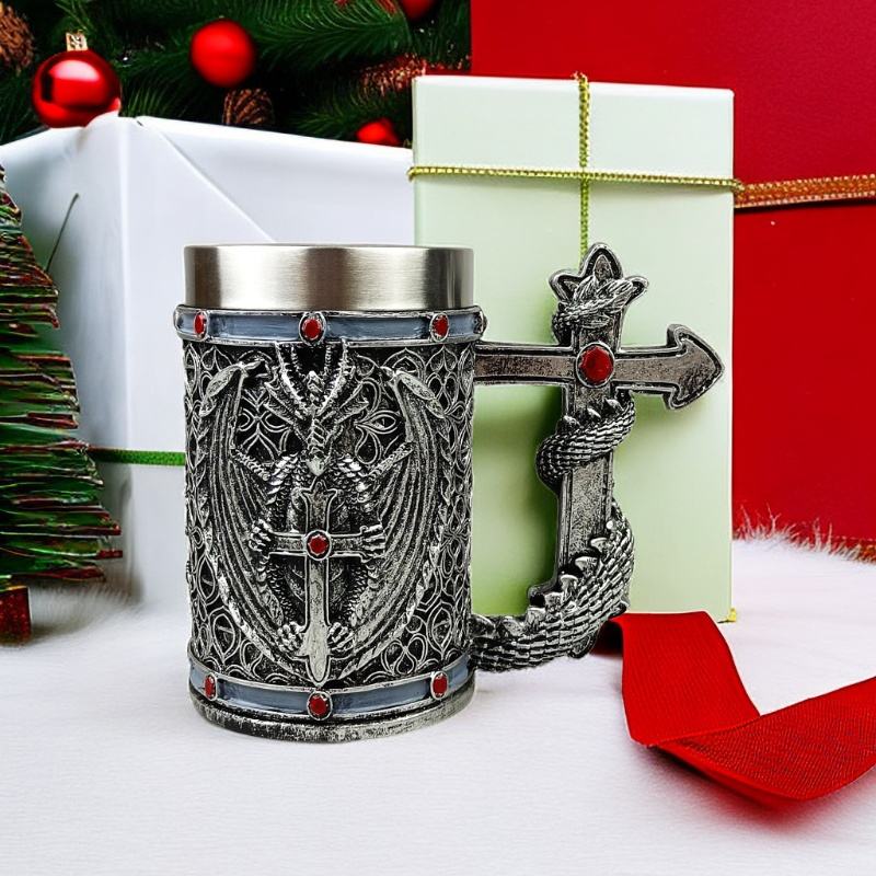 Nuova Tazza Drago Volante in Acciaio Inox Bafengte per Whisky Birra Caffè Festa Bar Tazze da Birra in Resina a Forma di Croce