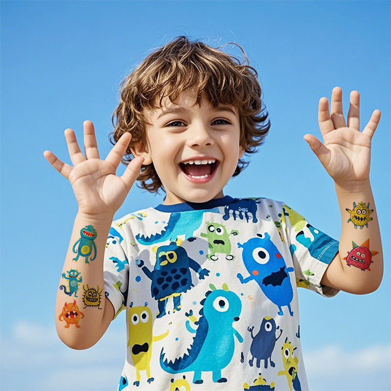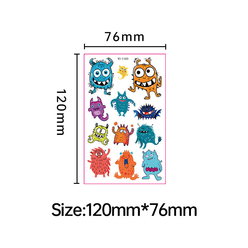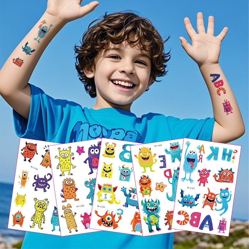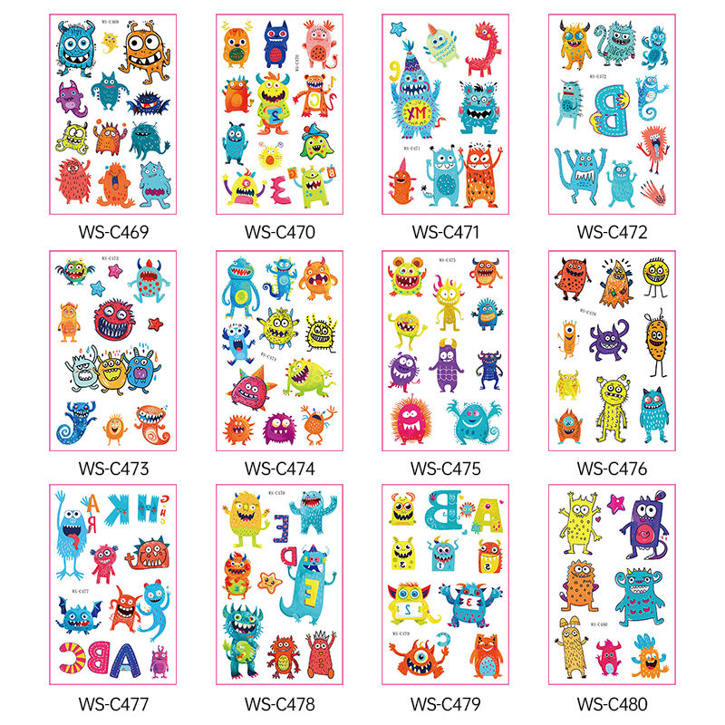 Nuovi miei amici mostri impermeabili adesivi temporanei del tatuaggio simpatici adesivi di carta dei cartoni animati per ragazzi e ragazze