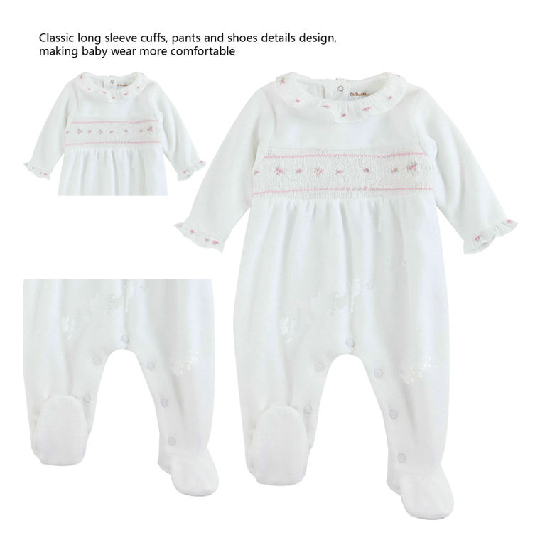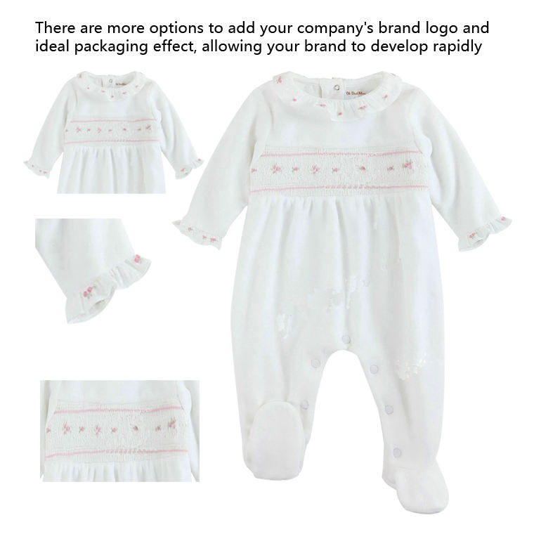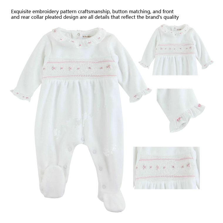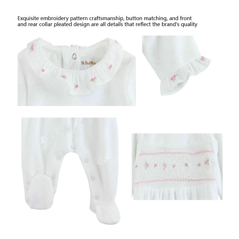 New Natural Organic Cotton Lapel Girls' Jumpsuit Knitted Baby Hand Embroidered Fashionable Lotus Collar Baby Rompers Jumpsuit