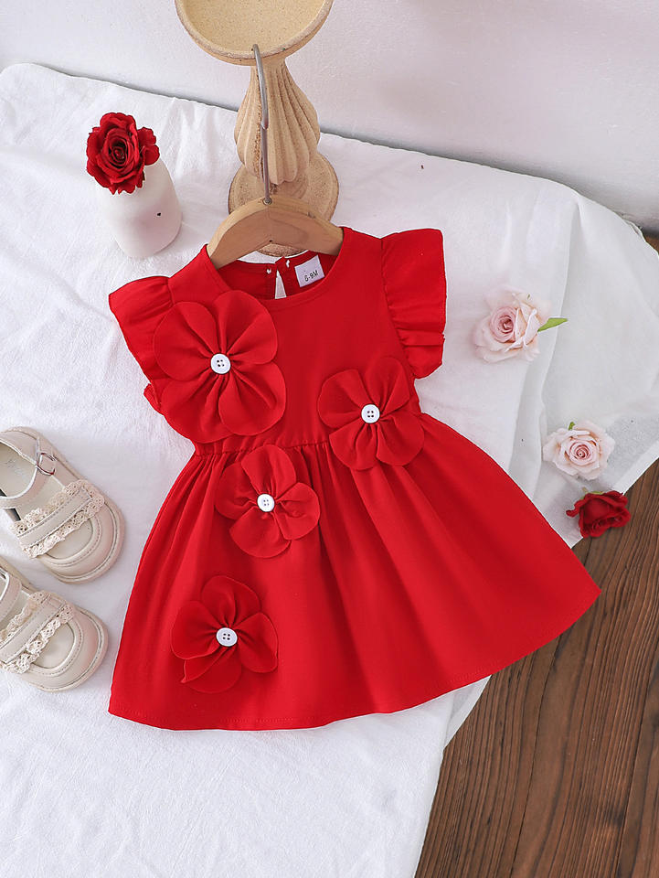 Nuovo Vestito Rosso per Neonata con Ricami e Decorazioni Floreali per Occasioni Speciali