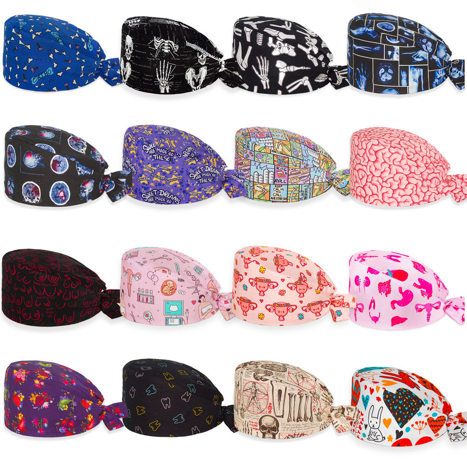 New Nurse Scrub Cap Medical Print Cotton Hospital Hat Cartoon Operating Room Nursing Scrubs Caps Dental Clinic Surgical Hats