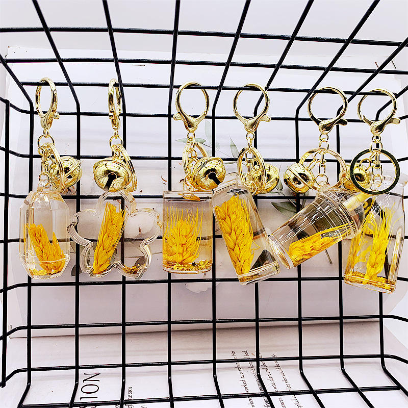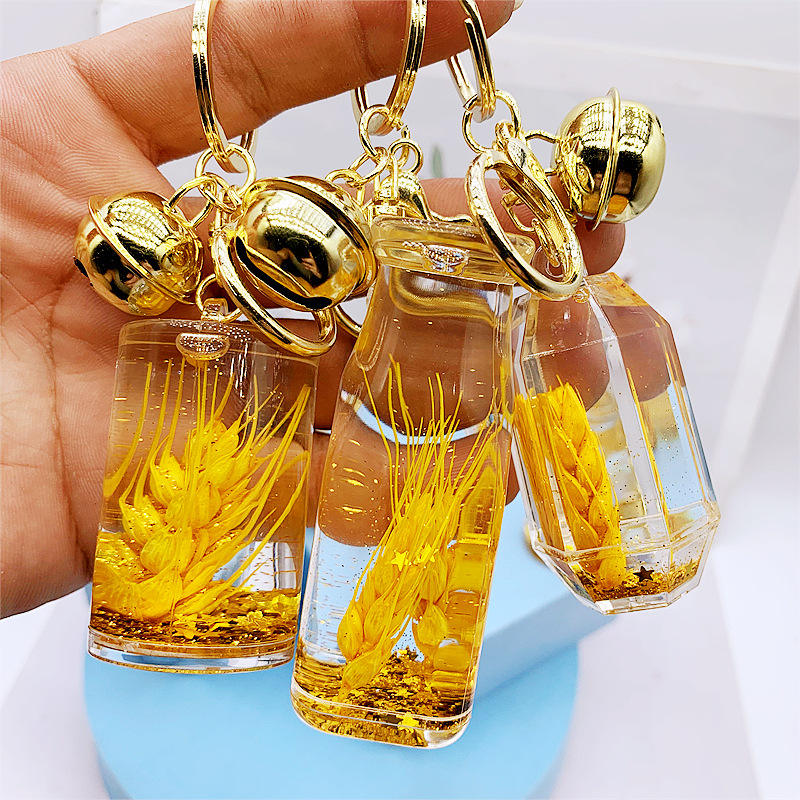 Nuovo Portachiavi in Acrilico con Effetto Olio, Bottiglia con Sabbie Mobili a Forma di Spiga di Grano, Decorazione Pendente per Auto e Borse, Vendita all'Ingrosso