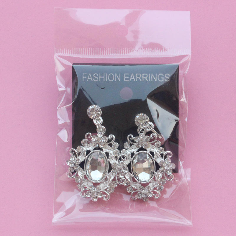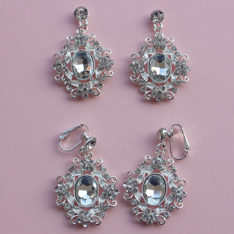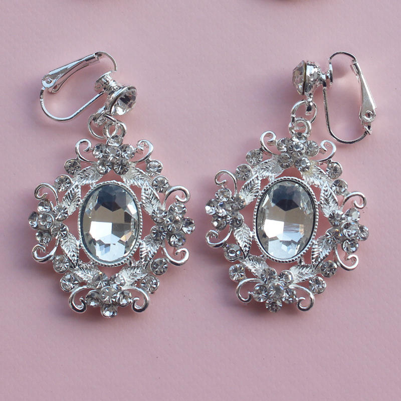 Nuovi Orecchini Lunghi Ellittici in Stile Palazzo Placcati Argento con Diamanti Bianchi Accessori da Sposa Esagerati