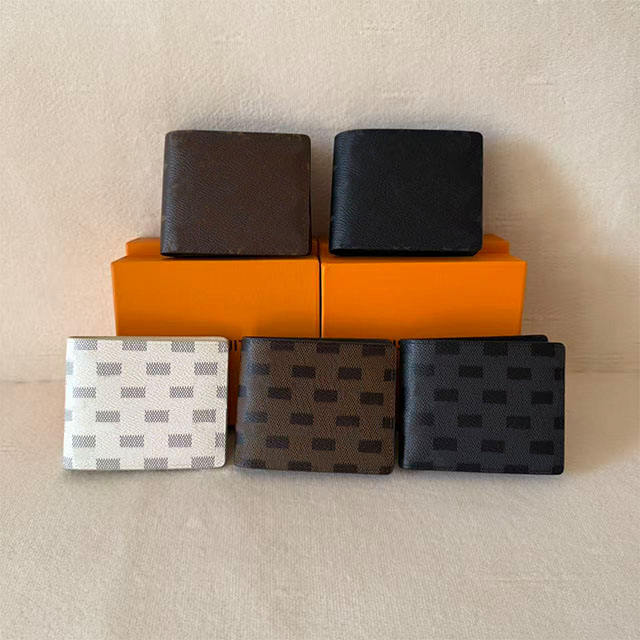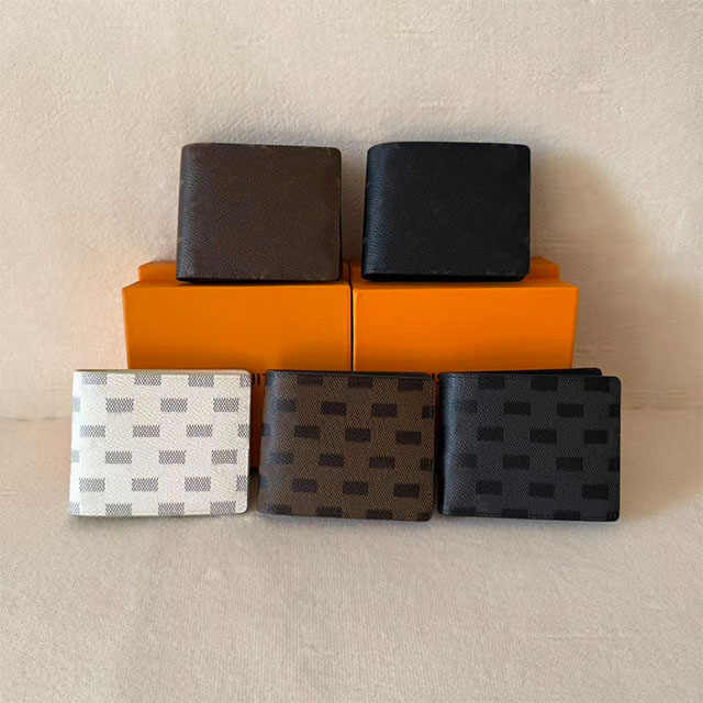 Nuovo Portafoglio da Uomo Bifold con Stampa a Quadri, 100% Pelle Bovina, Design di Lusso, Porta Carte di Credito in Vera Pelle Testurizzata