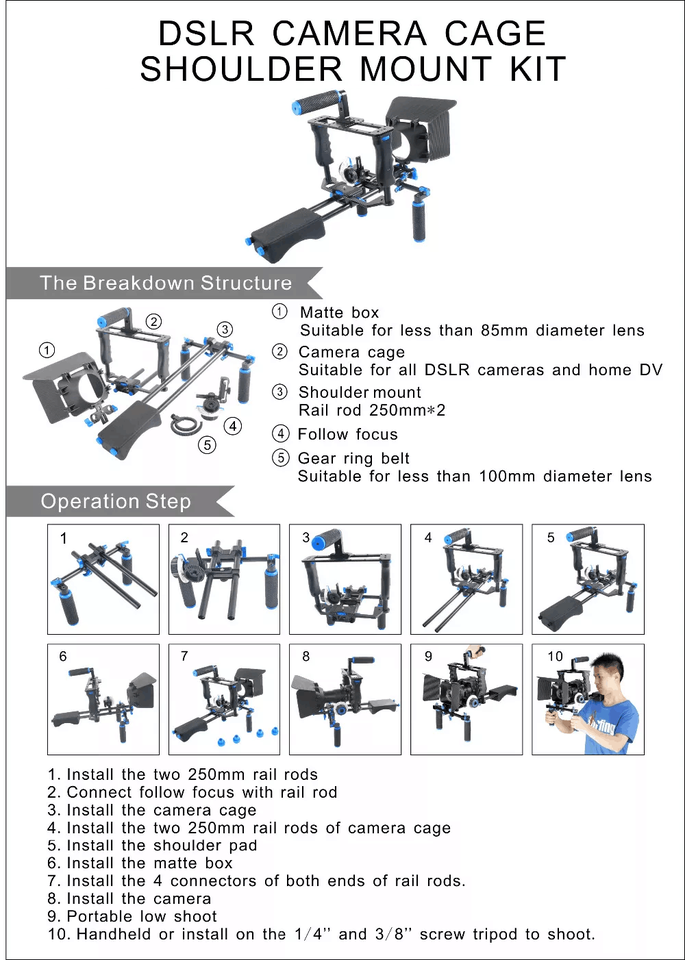 D221 Gabbia Fotocamera spalla kit di montaggio Stabilizzatore supportoNome del prodotto