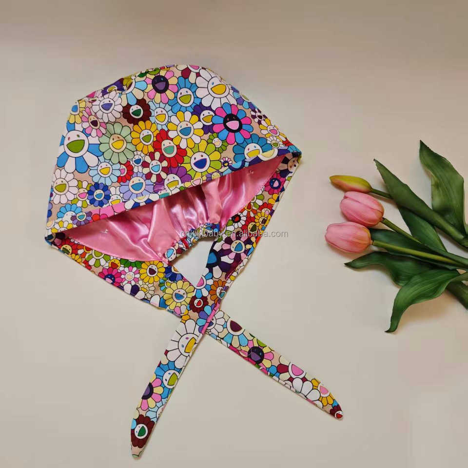 Nuovi Cappelli da Infermiera Rosa con Fodera in Raso, Berretti Chirurgici per Uomini con Capelli Corti, Cappelli da Medico con Laccetti Posteriori, Stampa con Personaggi dei Cartoni Animati