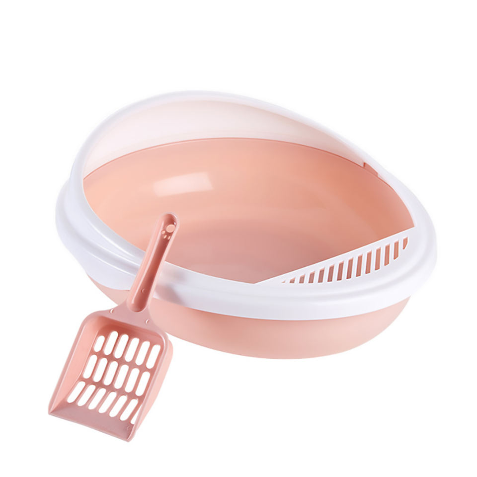 Nuova lettiera per gatti con recinzione alta anti-sabbia a forma di uovo in plastica scatola per lettiera per gatti con cassetto semichiuso aperto semplice con paletta