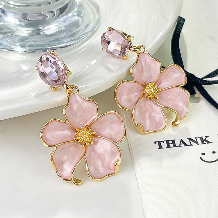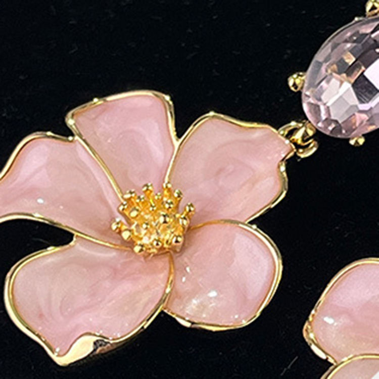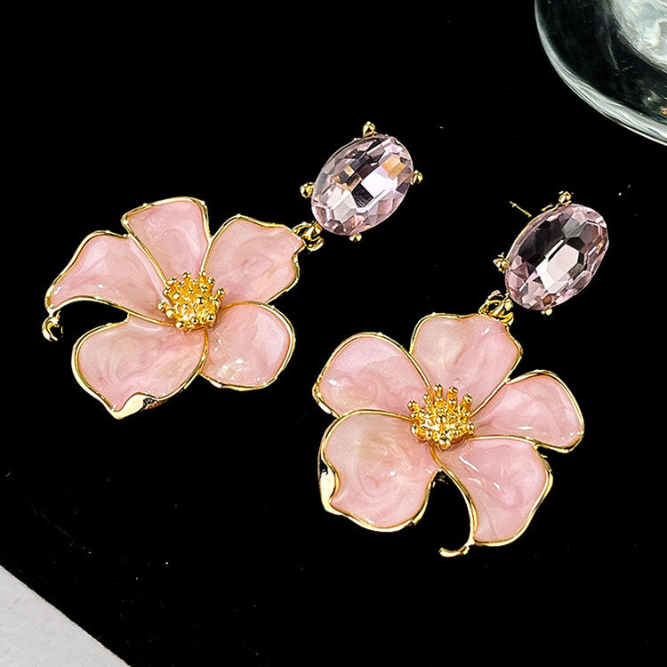 Nuovi orecchini da donna luccicanti e luccicanti retrò con grande diamante rosa pesca placcati in oro