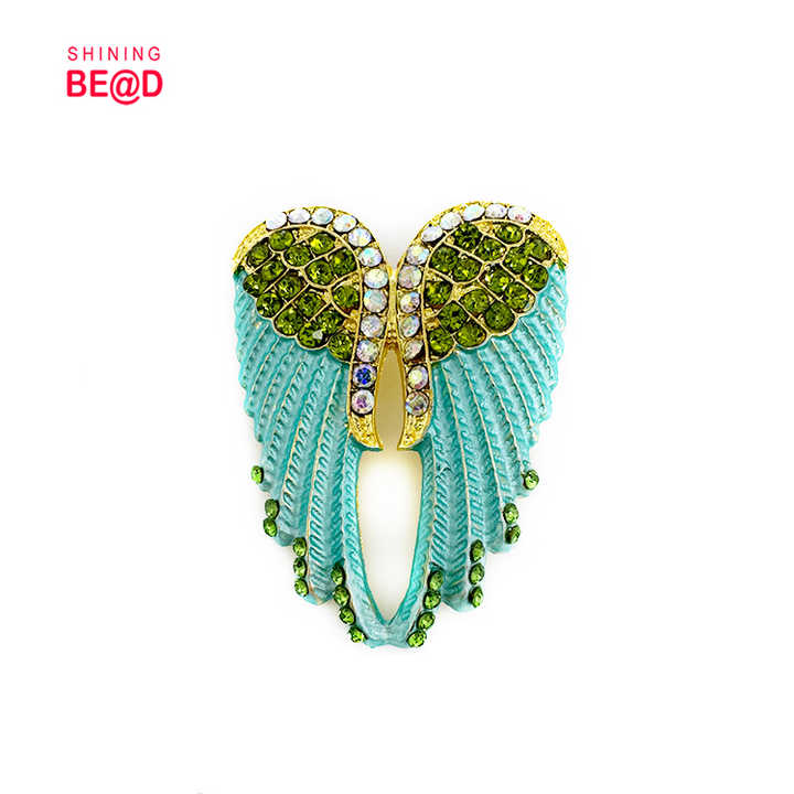 Nuova Popolare Spilla in Metallo a Forma di Ali d'Angelo con Strass e Piume, Accessorio di Moda