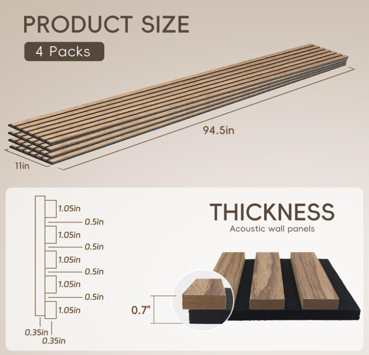 New Popularity 4 Pack MDF Wood Panels Acoustic Soundproof Wall Slat Panels for Home Office Decoration