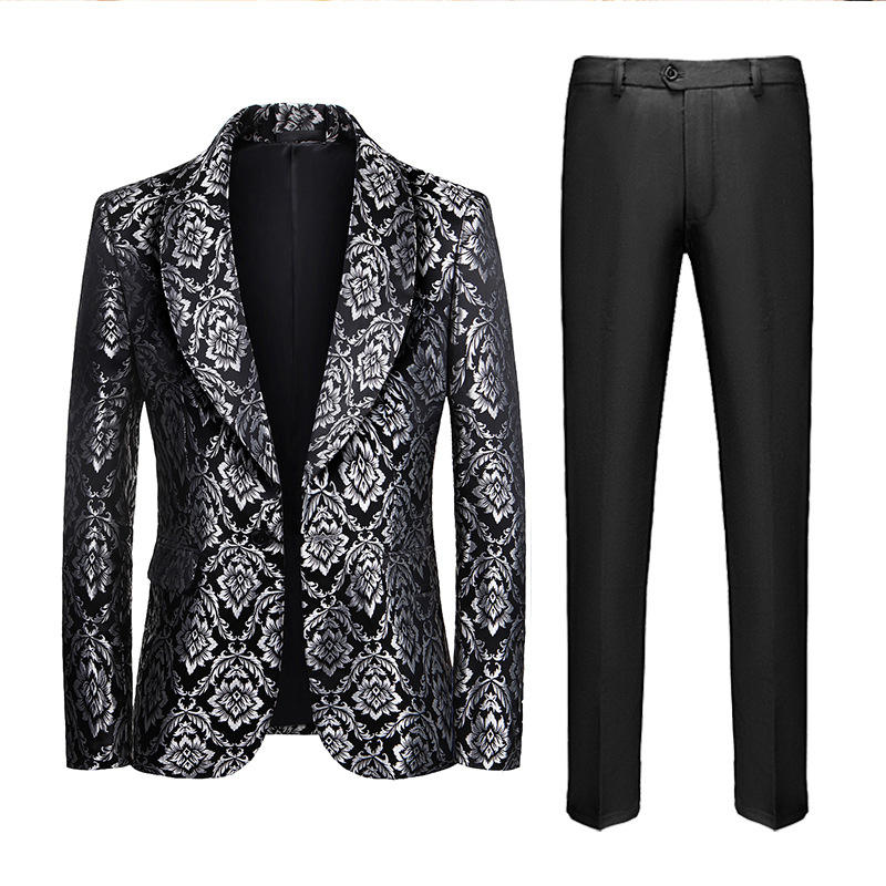 Nuovo Completo Casual Stampato a Due Pezzi per Uomo, Abito Jacquard da Maestro di Cerimonie
