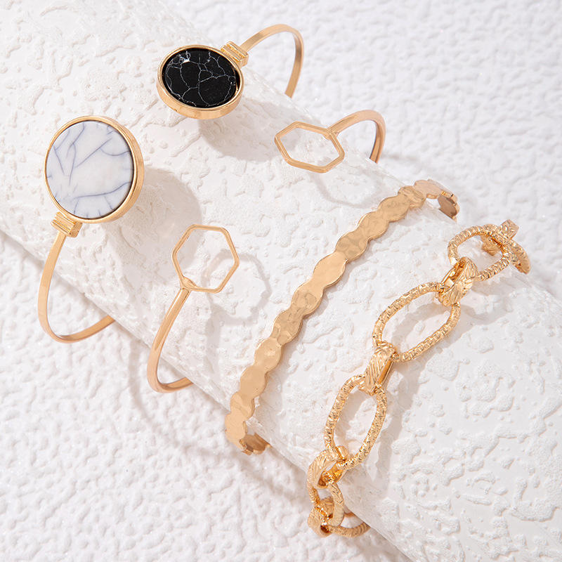 New Product Bracelet Marble Thick Chain Fashion Trend Exaggerate Personality Four Piece Set Open Bracelet Bracelet Bra