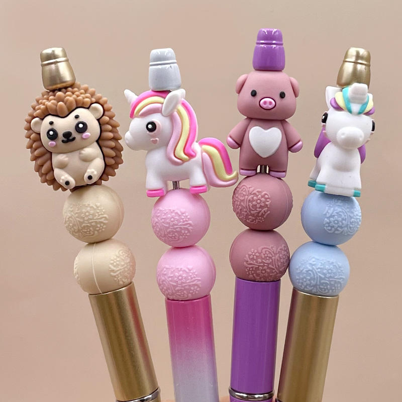Perline focali in silicone morbido con personaggi 3D a tema animale, colori Pantone, per penne, certificate EN71/ASTM F963