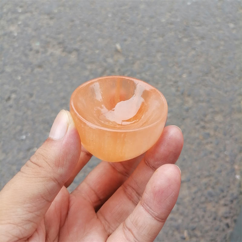 New Product Healing Crystals Big Size Orange Selenite Round Set of Bowl for Home Decoration