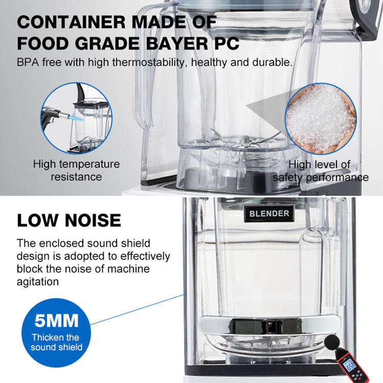 Nuovo Frullatore Commerciale Professionale NSF per Bar, Negozi di Tè e Smoothie, 1.5L 2L 1500W 2200W, Insonorizzato e Resistente