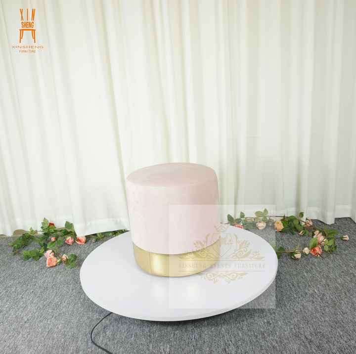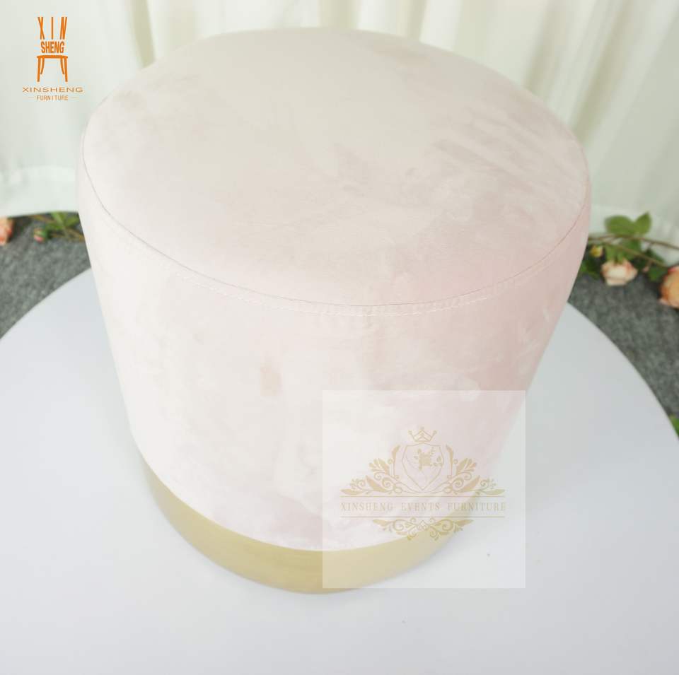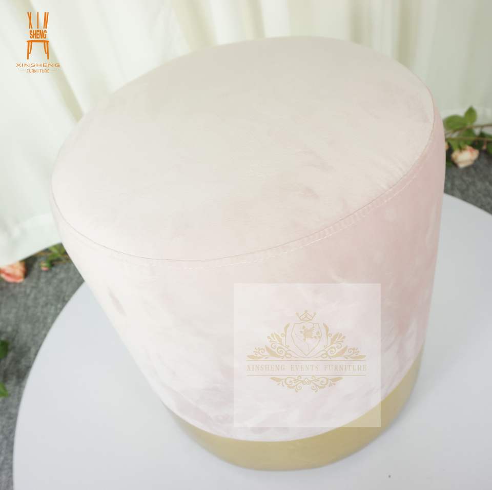 New Product pink Black Velvet Cushion Footstool Chair with Living Room Round Ottoman Stool with Gold Side