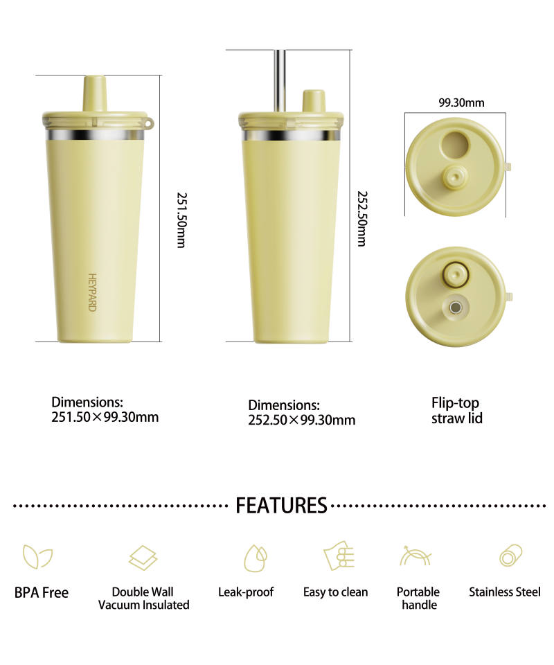 Portatile, Affari, Ecosostenibile, Large capacity, Immagazzinato, Lavabile, Antiscivolo, A prova di perdite, Intelligente, BPA-Free, Isolamento sottovuoto a doppia parete, Isolamento termico, A prova di fuoriuscita, Flip straw, Bocca stretta, Manicotto in Silicone, Fondo in gommaCaratteristica