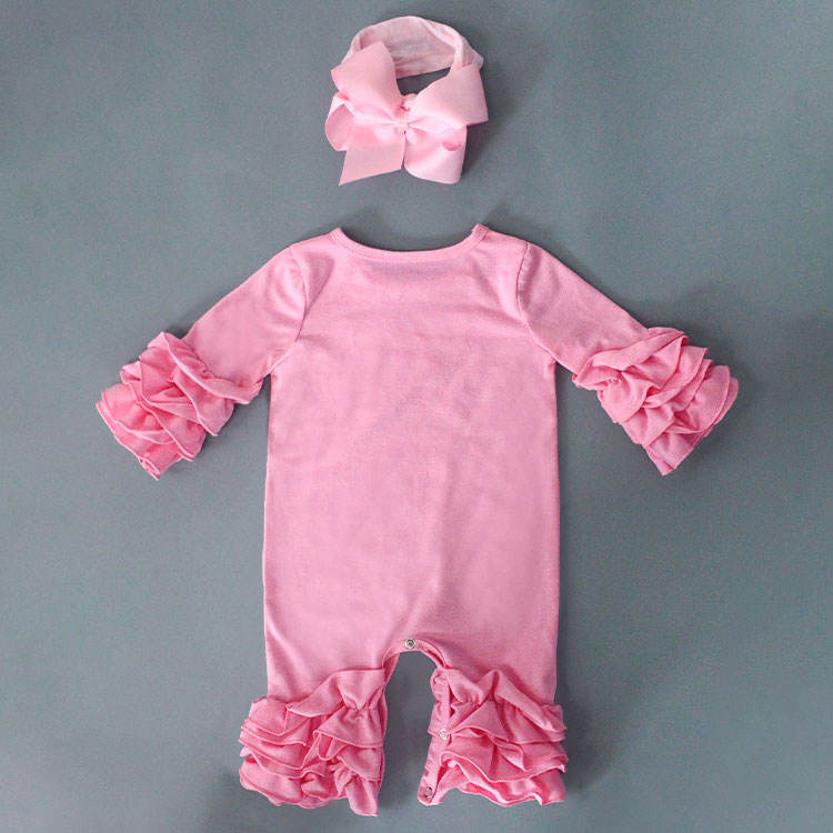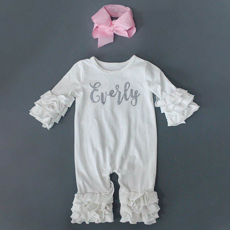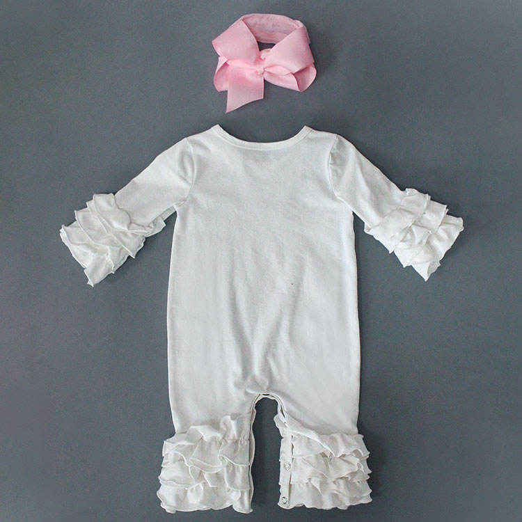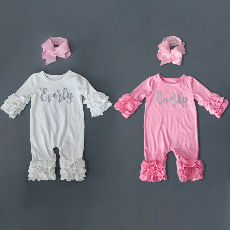 Nuovi prodotti set di pagliaccetto per neonate con stampa personalizzata con volant autunnale con fascia