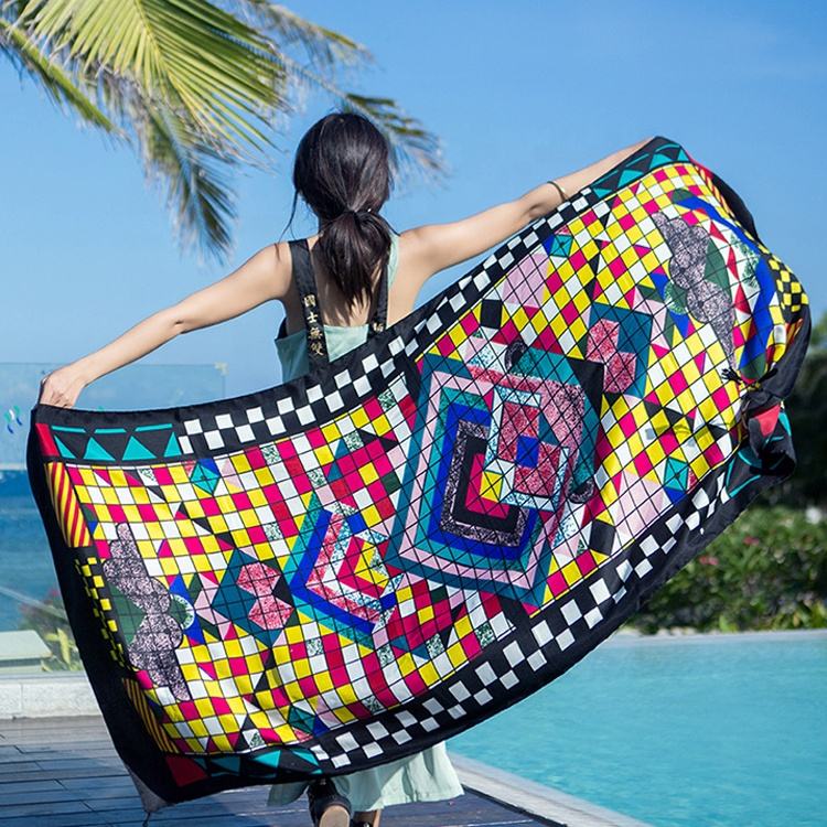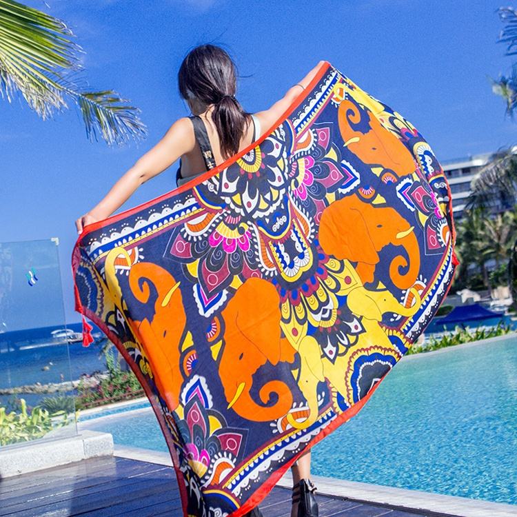 Nuovi prodotti stile di stampa Oversize scialli di cotone in saia donna estate viscosa sciarpa del mantello da spiaggia con frangia