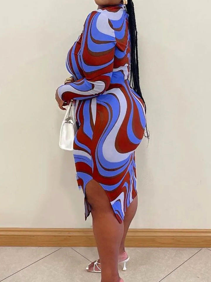 New Products Plus Size Women's Clothing Knitted Graphic Printing Slim Fit Comfortable Hip Hugging Dress