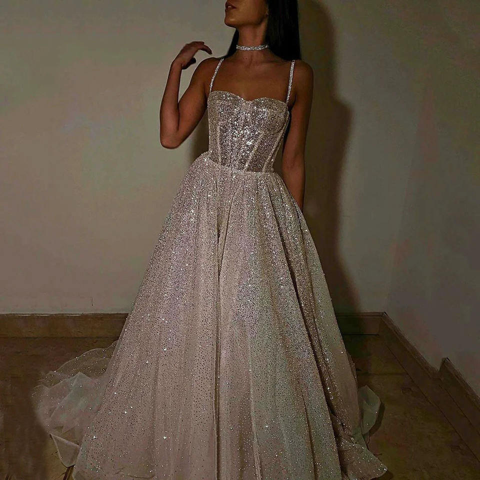 New Puffy Halter Princess Elegant Graceful Birthday Party Hosting Sequined Evening Dress