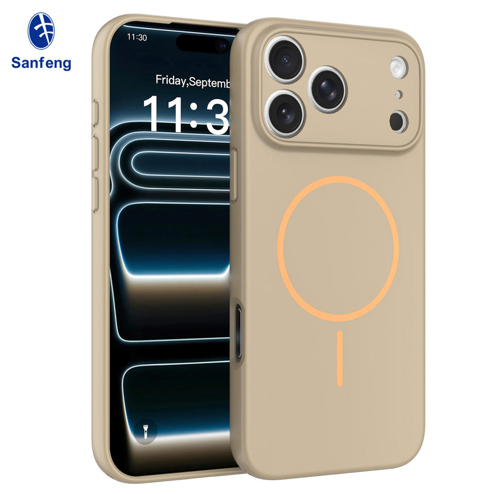 Nuova Cover Magnetica per iPhone 17 Pro Max in Tinta Unita con Finitura Effetto Pelle Oro Deserto e Protezione Lente con Foro di Precisione
