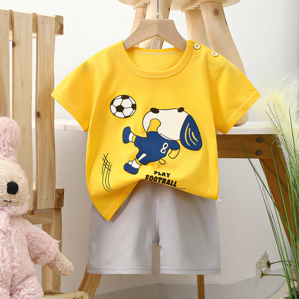 New Pure Cotton Children's Unisex Short-sleeved Suit Korean-style Leisure Cartoon Animal Print Summer Clothing