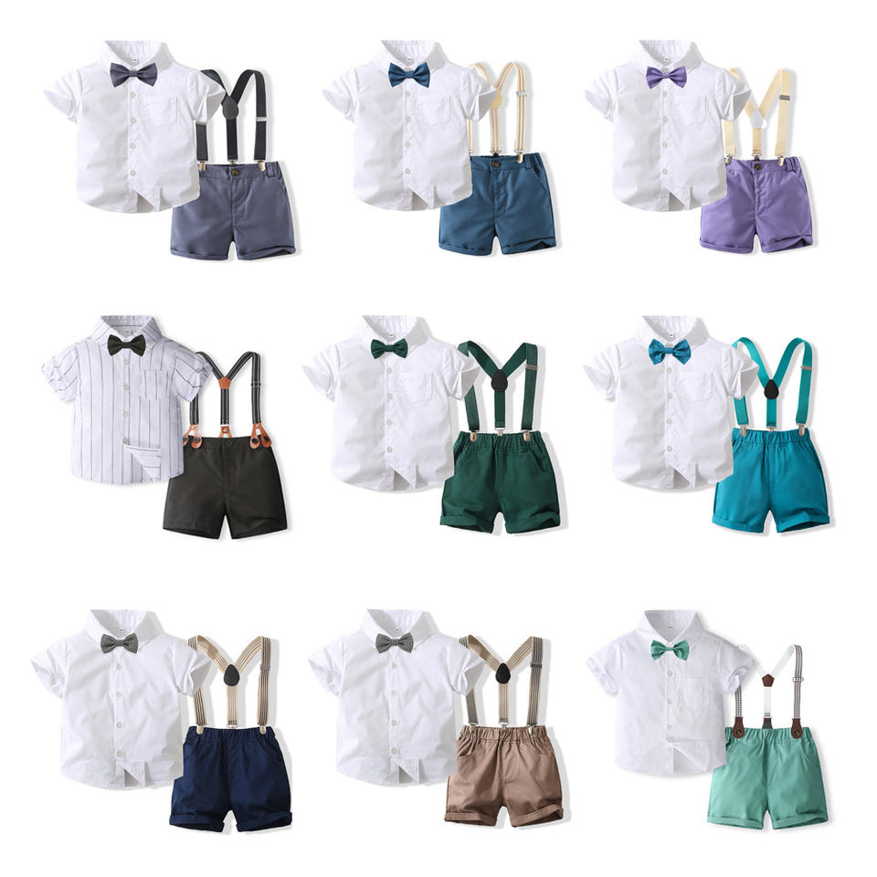 New Quality Baby Clothing Sets Boy Short Sleeve 1 Year Birthday Dress Suits for Boys Wholesale Dress Suits With Bow