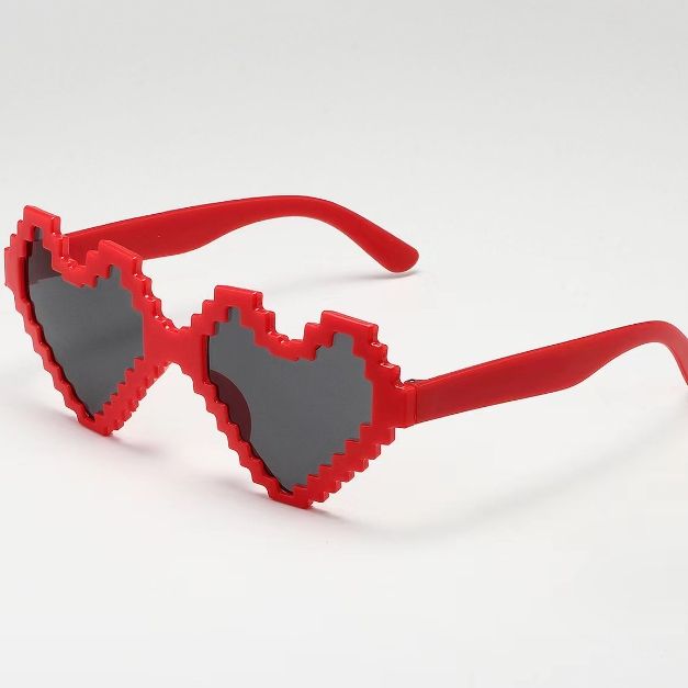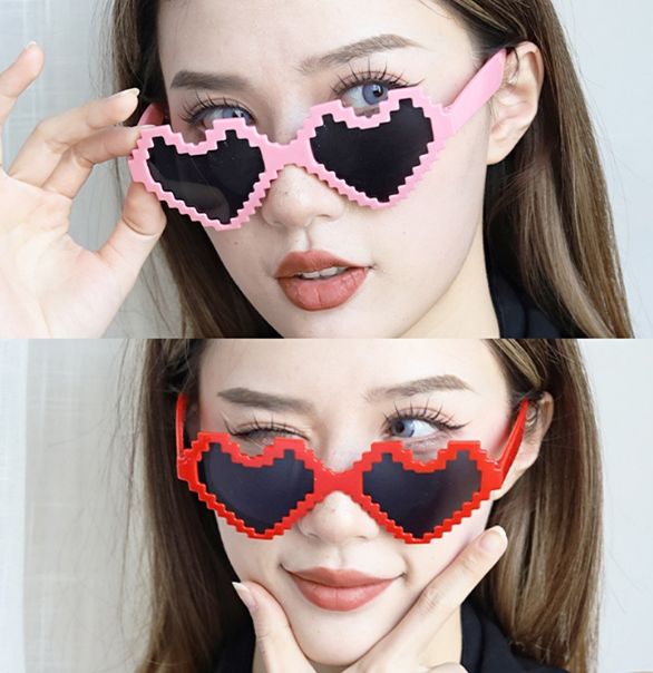 Nuovi occhiali da sole a cuore rosa rosso Cos occhiali da sera divertenti da sera a mosaico rosso pixelato Thug Life Lentes De Sol