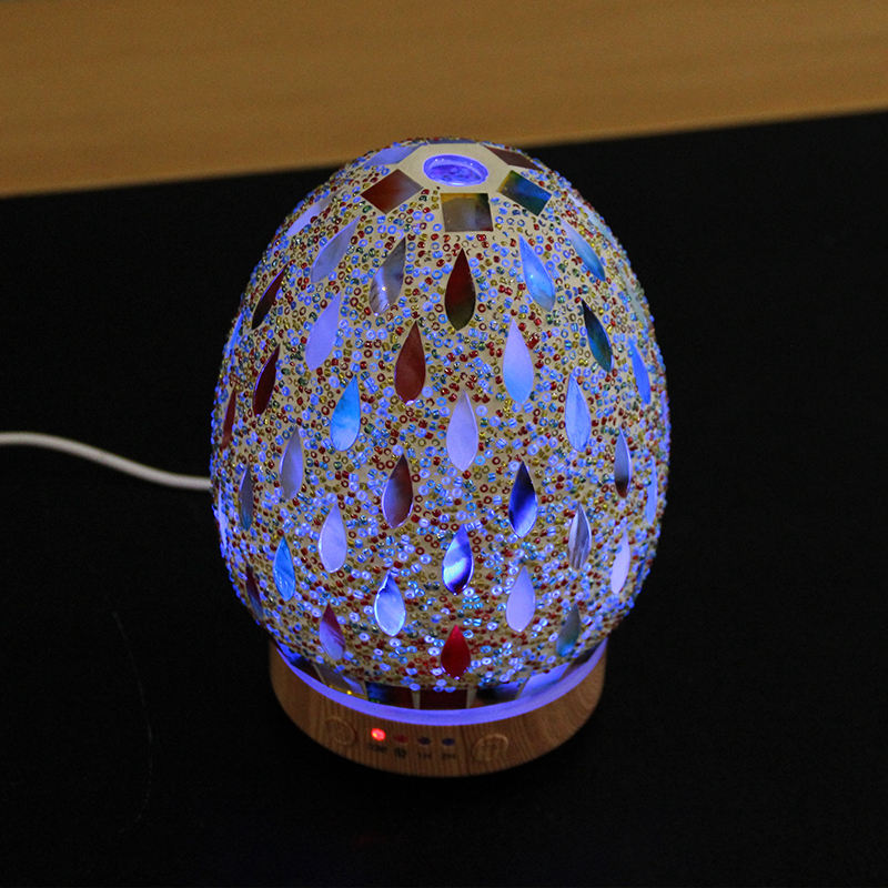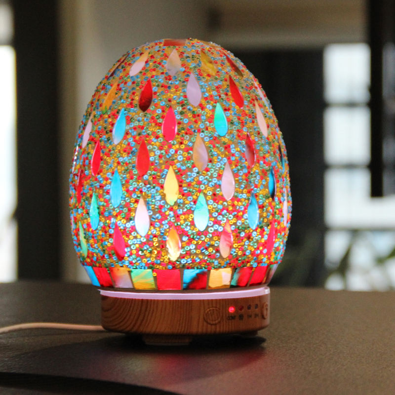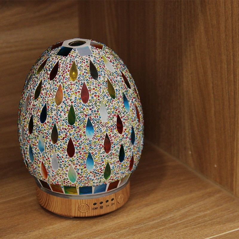 New Releases 2023 Raindrop Beads Mosaic Glass Aroma Diffuser Humidifier Air Quality Appliances with LED Light for Home