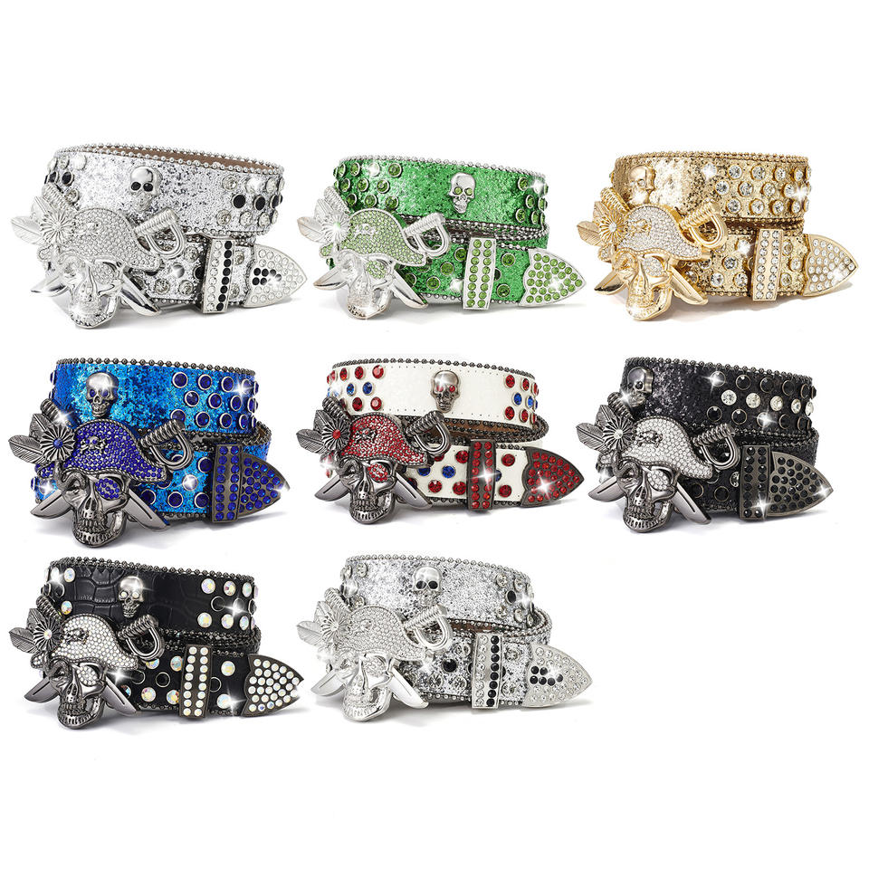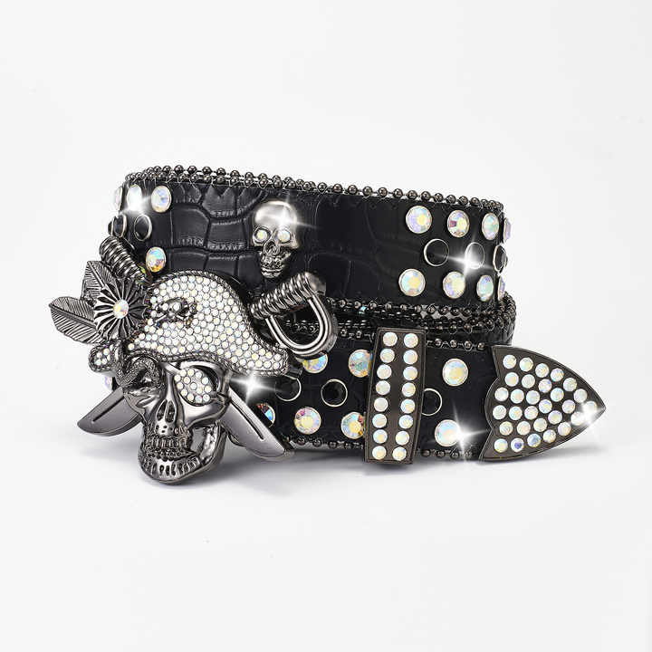 Nuova cintura retrò Bling Bling BB Simon con cinturino in pelle di diamante con fibbia con teschio cintura di strass da donna con cintura da Cowboy occidentale