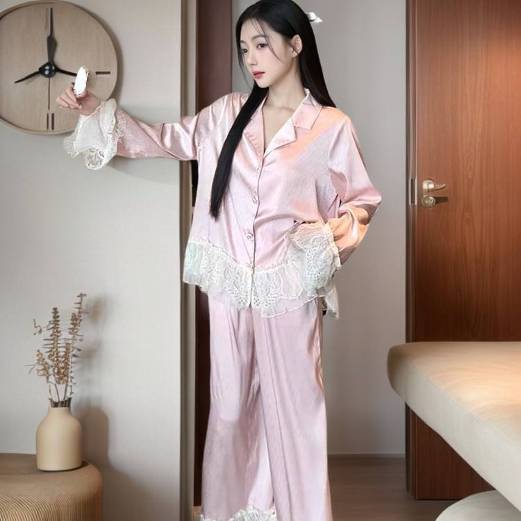 New Satin Pajamas French Style Ice Silk Pajamas for Women Sweet Princess Style Palace Style with Lace Details