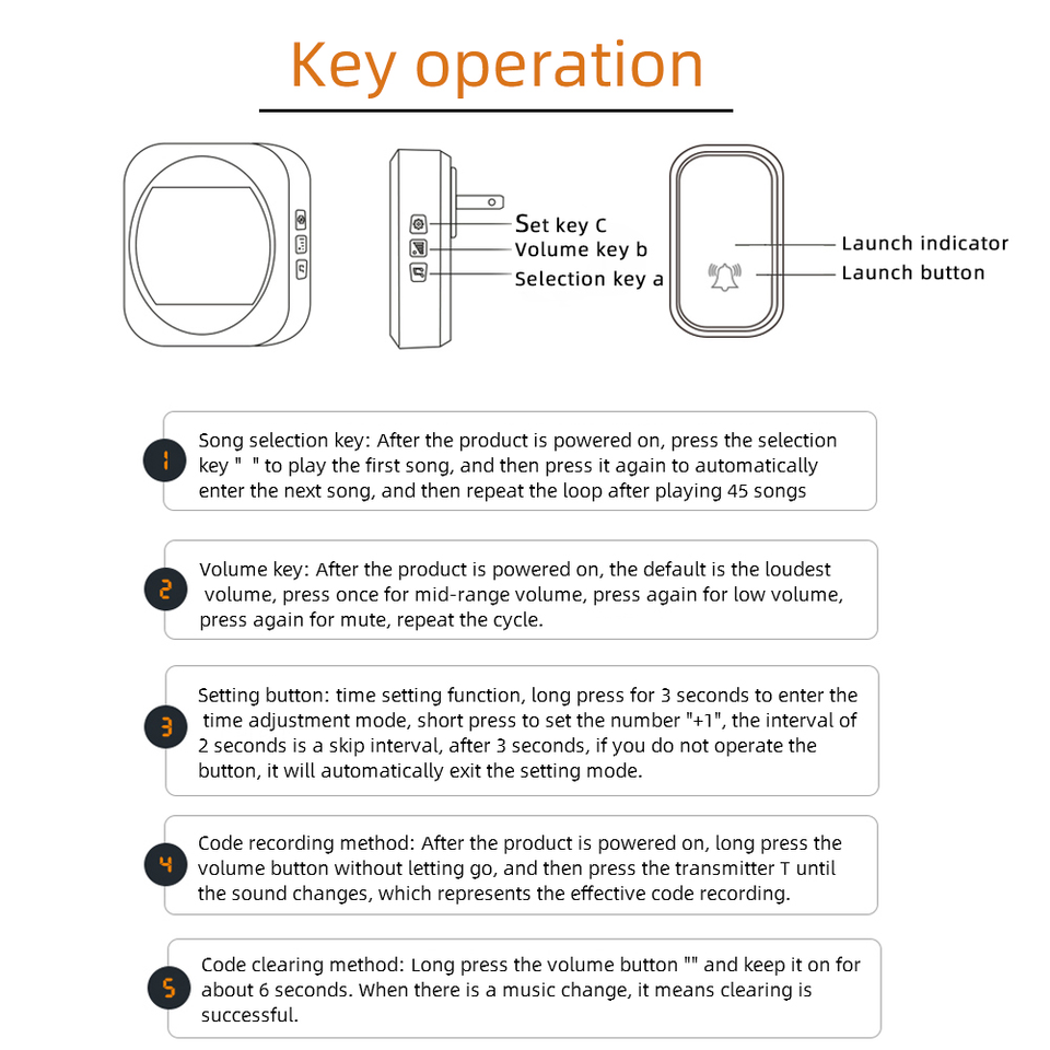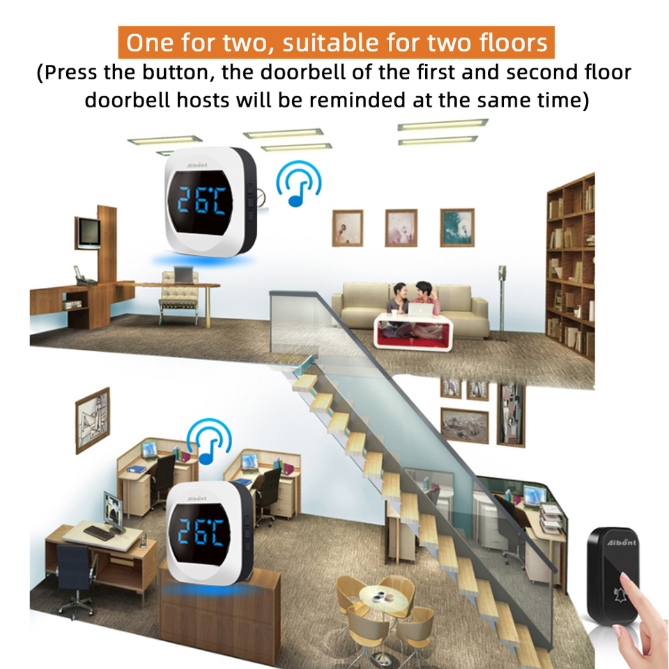 New Self Powered Doorbell Temperature Function Smart Doorbell Remote Control Doorbell Home Office Use Without Battery White