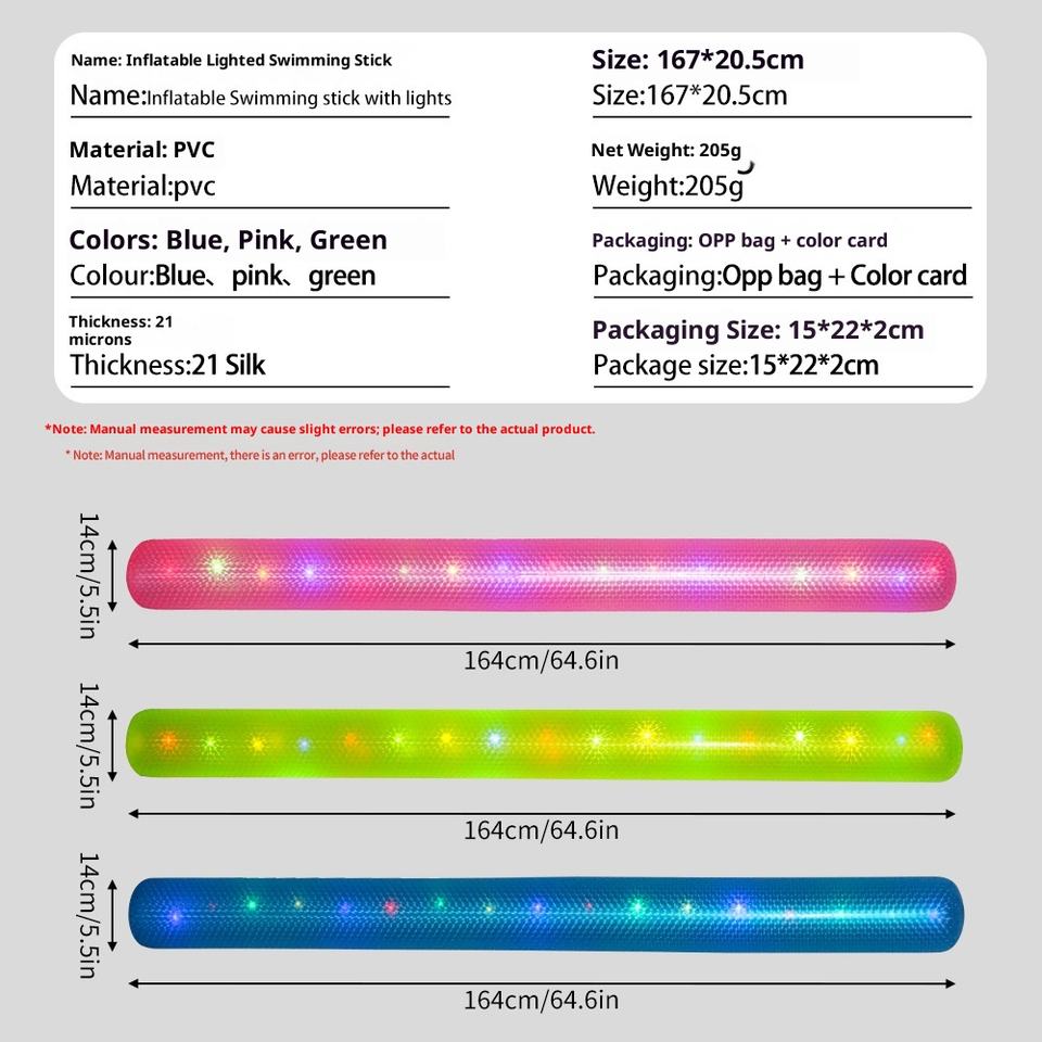 Nuovo Bastone Gonfiabile Luminoso per Nuoto con Luci Integrate Effetto Lampeggiante Modello D2112 Design Monocolore