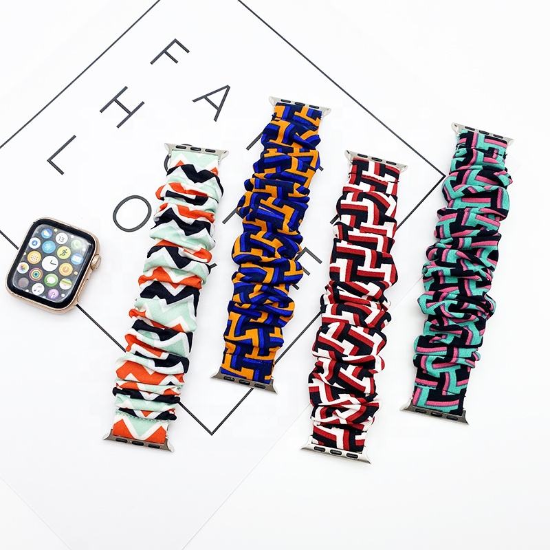 New Soft Fabric Elastic Scrunchy Wristband for IWatch 42mm 44mm Straps,for Apple Watch Bands 38mm Scrunchies Band Women