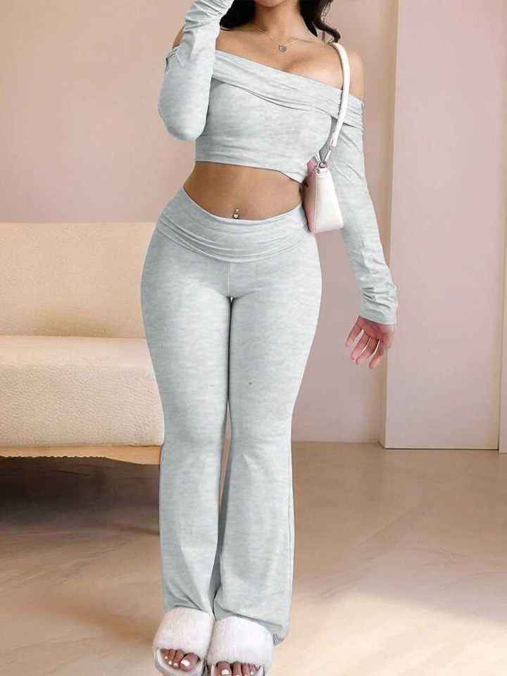 Nuovo Completo Sportivo da Donna Due Pezzi: Top Aderente a Maniche Lunghe con Spalle Scoperte e Pantaloni Lunghi Traspiranti