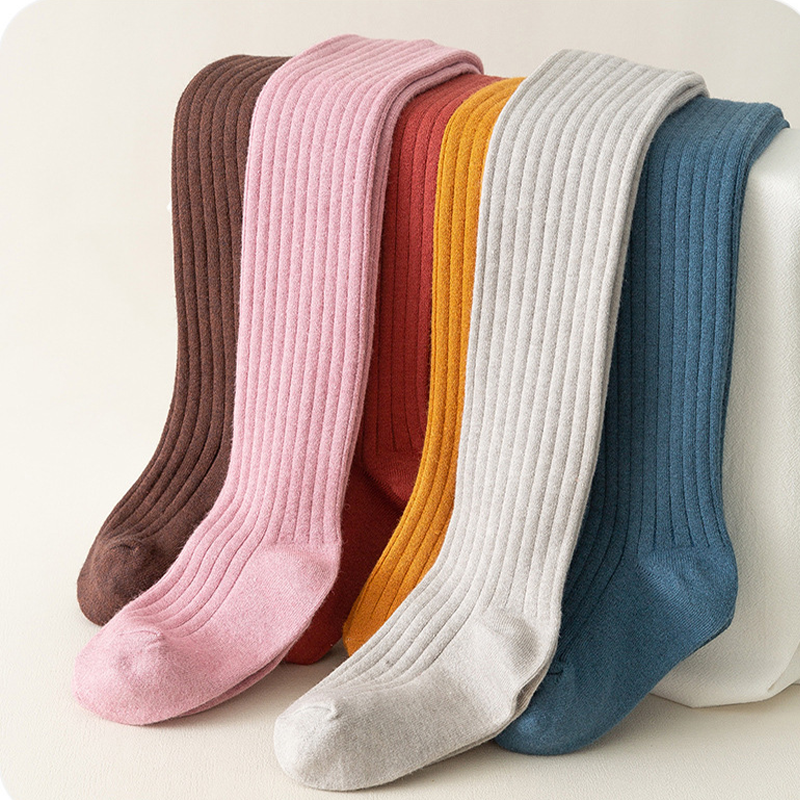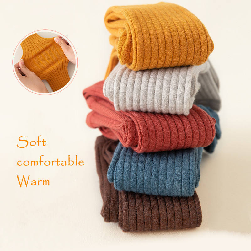 Nuovi Leggings per bambini caldi in lana spessa a righe verticali in tinta unita collant in cotone invernale per ragazze