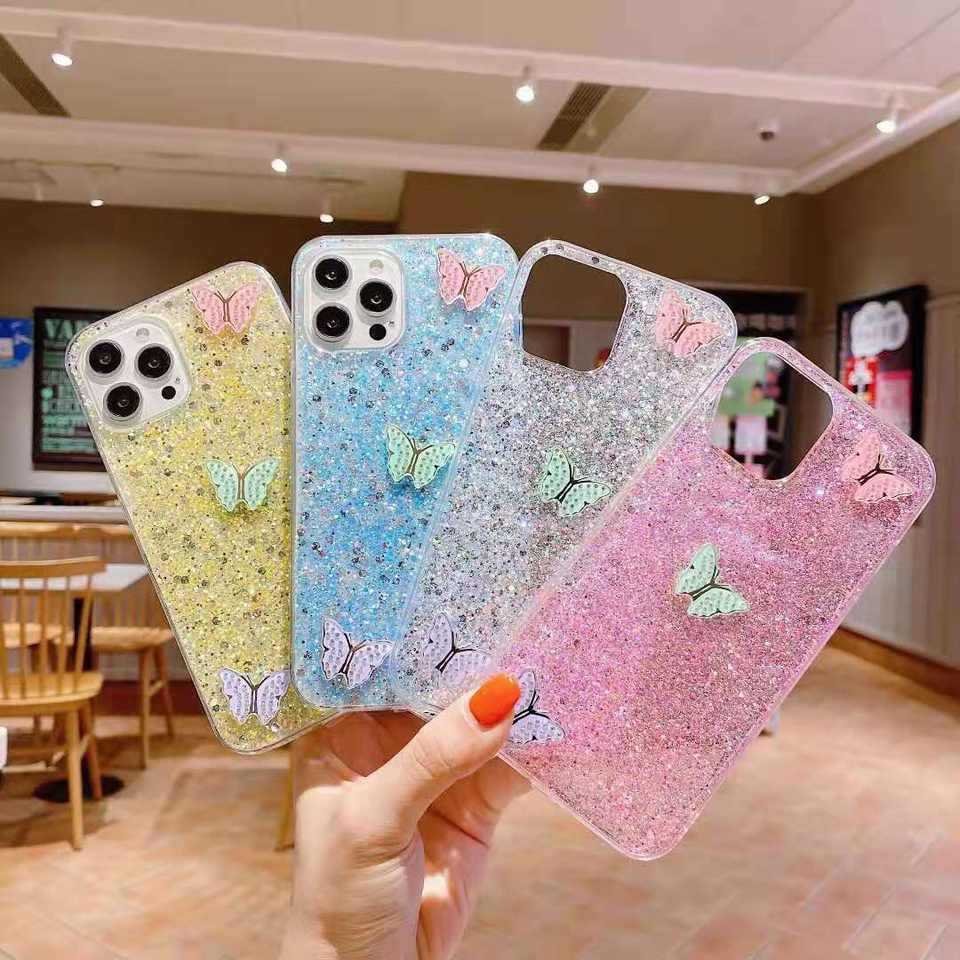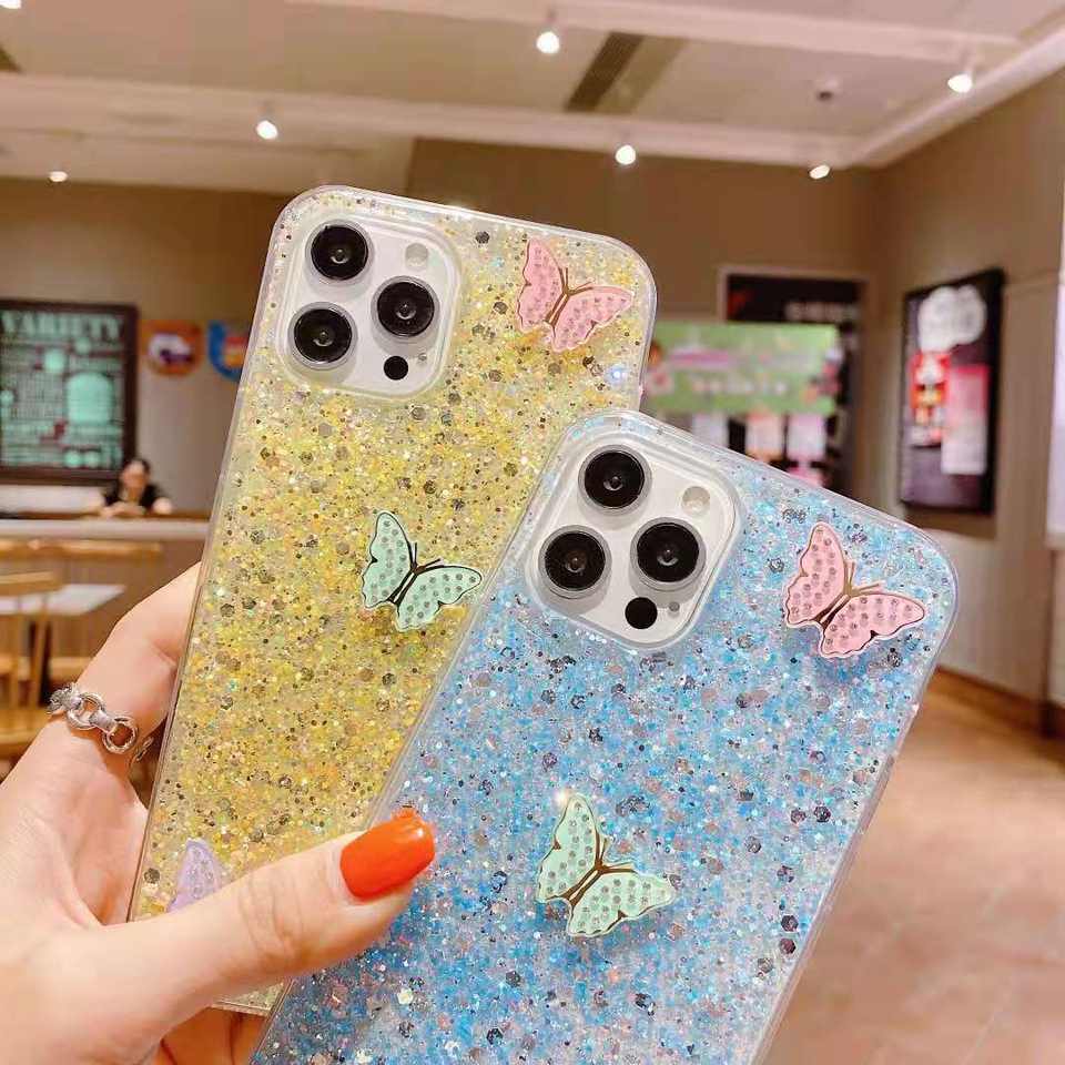 Nuova Cover Flessibile in Gel TPU Morbido con Glitter Scintillanti e Brillanti per iPhone 11 12 13 14 15 16 Plus Pro