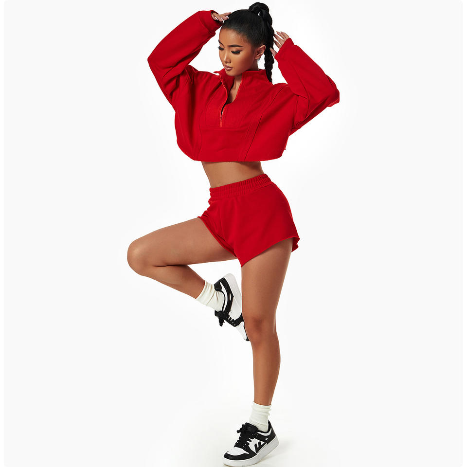 Product Name:Zip Long Sleeves Fitness Stand Collar Female Sportswear Sweater Suit