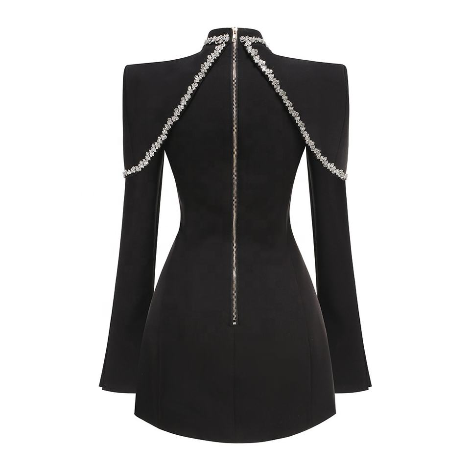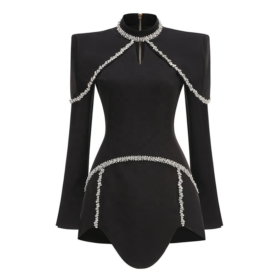 Abito mini aderente a maniche lunghe con cristalli scintillanti per serate ed eventi, taglie S-L o su misura, 1 pz