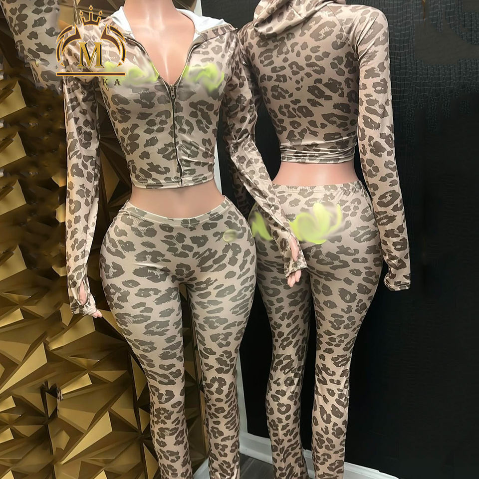 Nuovi abiti da donna primavera autunno giacca leopardata pantaloni lunghi 2 pezzi Set Sexy donna leopardo due pezzi Set per abiti da donna